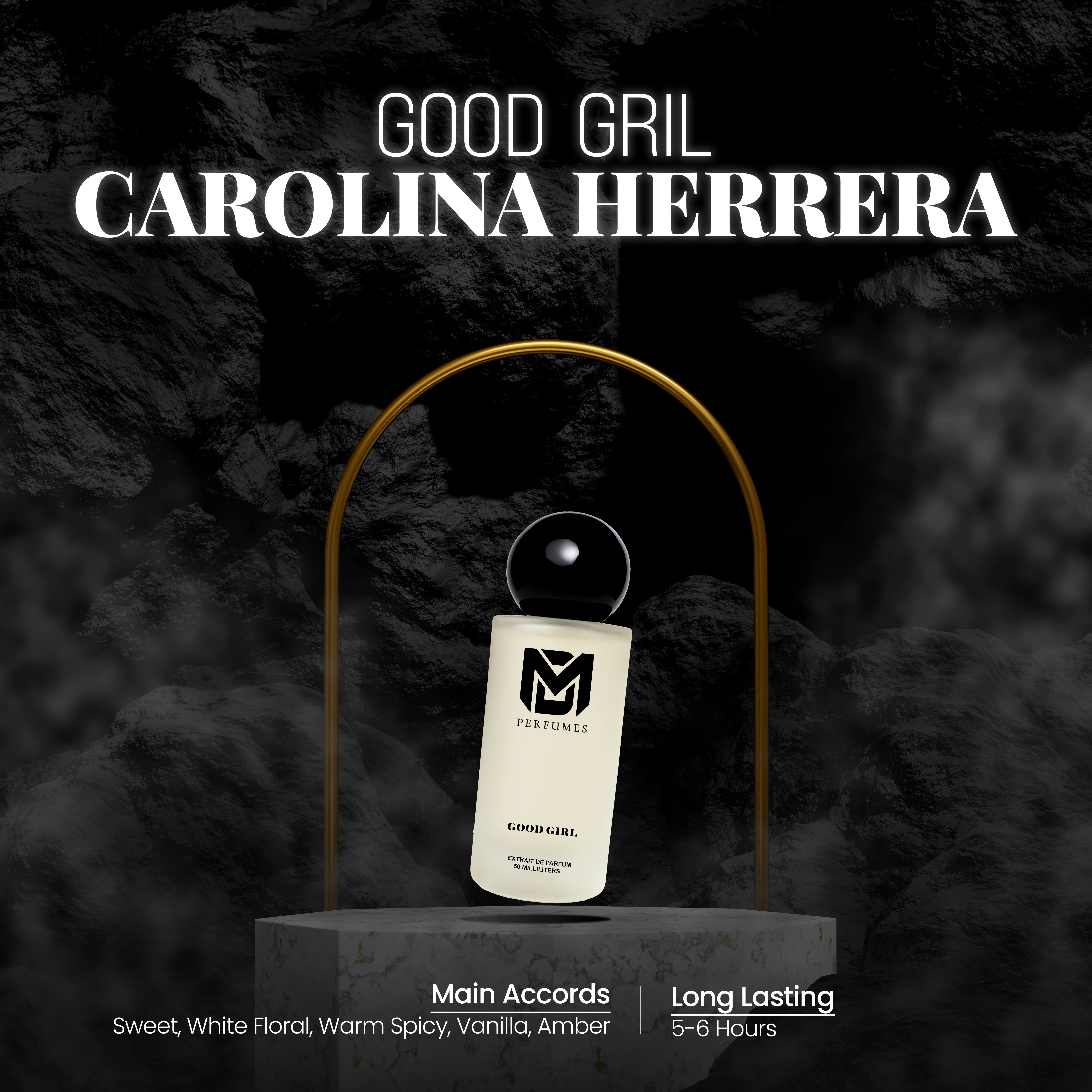 GOOD GIRL is a fragrance of duality—the sweet and the daring, the innocent and the bold. It opens with a seductive blend of almond and coffee, lifted by citrus brightness. At its heart, jasmine sambac and tuberose bloom luxuriously, weaving elegance and sensuality. The base unfolds with tonka bean, cacao, and vanilla, wrapped in creamy woods, leaving behind a trail that is deep, sweet, and unforgettable.