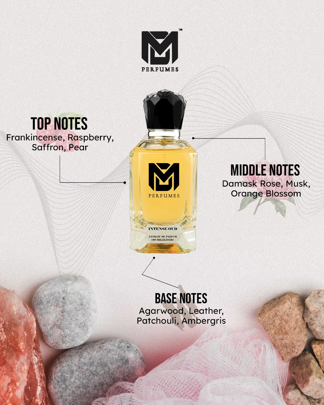 INTENSE OUD is a fragrance of power, mystery, and timeless Arabic luxury. It opens with smoky incense and resin, immediately bold and captivating. The heart reveals amber and rich woods, deepened with subtle leather for sophistication. At its foundation lies pure oud, intense and commanding, leaving a trail of strength and prestige.
