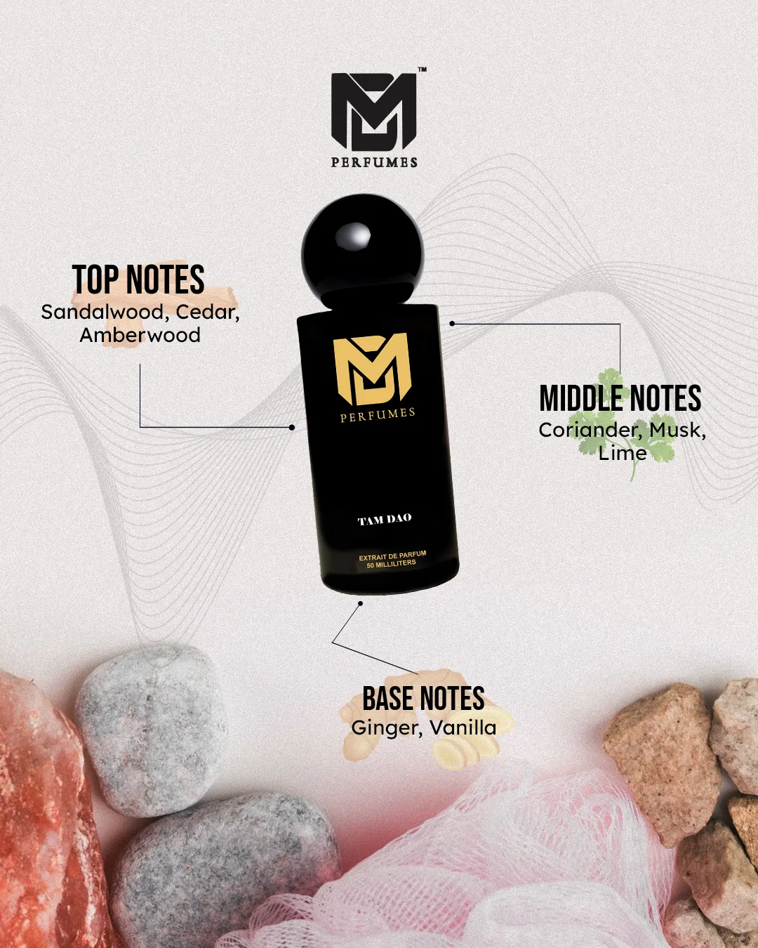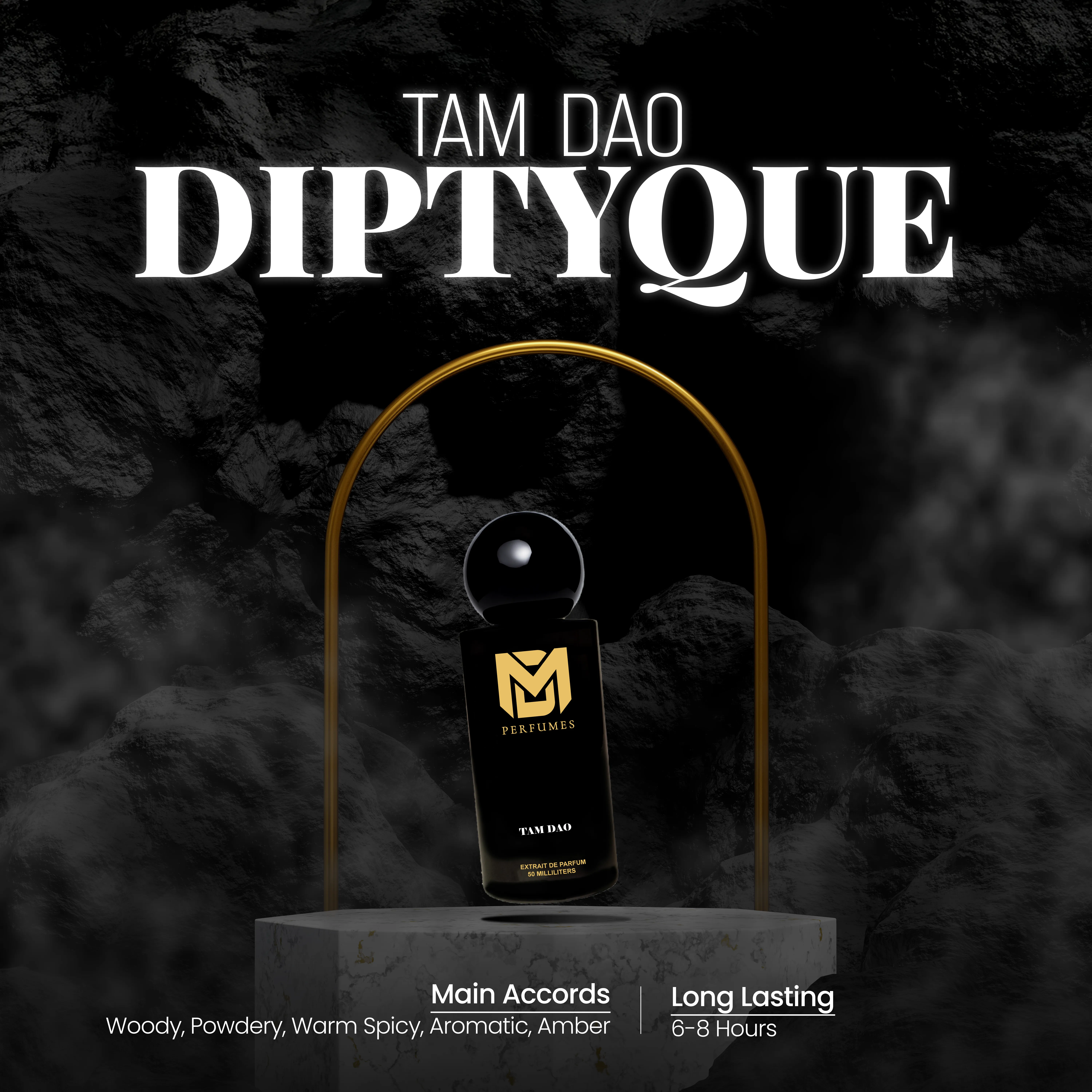 TAM DAO is a fragrance of serenity and timeless woods. It opens with green cypress and delicate rose, evoking stillness and calm. The heart is carried by creamy sandalwood and dry cedar, a pure and elegant duet that lingers softly on the skin. The base of amber, musk, and subtle spice adds warmth and depth, leaving behind a scent that feels both intimate and eternal.